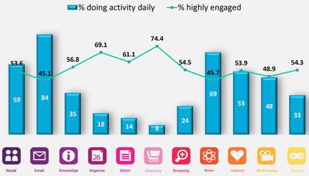 Рис. 6. Уровень вовлеченности российских пользователей в основные виды онлайн-деятельности